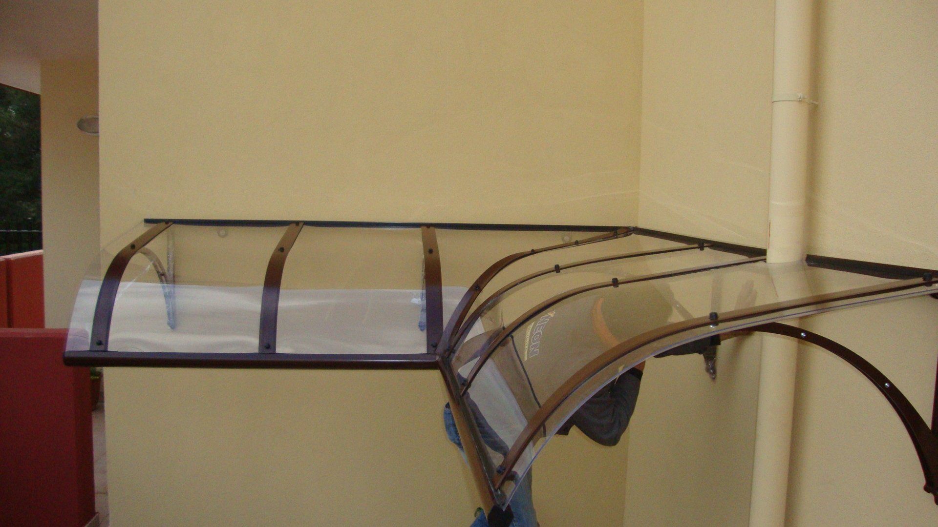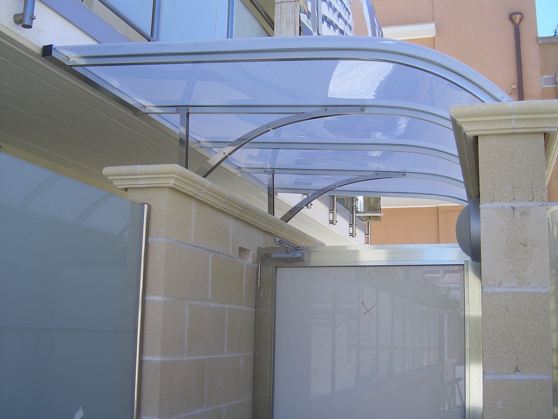 Queste pensiline protettive hanno una struttura in alluminio nei colori di riferimento Ral e una staffa montante in acciaio zincato laccato. Copertura con policarbonato compatto protetto UV nei colori trasparente, fumè o bianco. Sono possibili versioni standard o misure intermedie e forme diverse. Per ricevere più informazioni, non esitate a contattarci e richiedere una consulenza con i nostri tecnici specializzati.